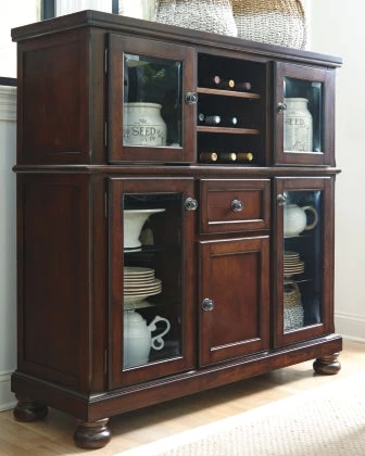 What a wonderfully fresh take on farmhouse-chic design. With its glass-panel doors, antique-style hardware and classic bun feet, this dining room server satisfies your taste for modern classic. Providing both protection and transparency, four glass doors give you the chance to get creative and turn your everyday dining accessories into artful accents.