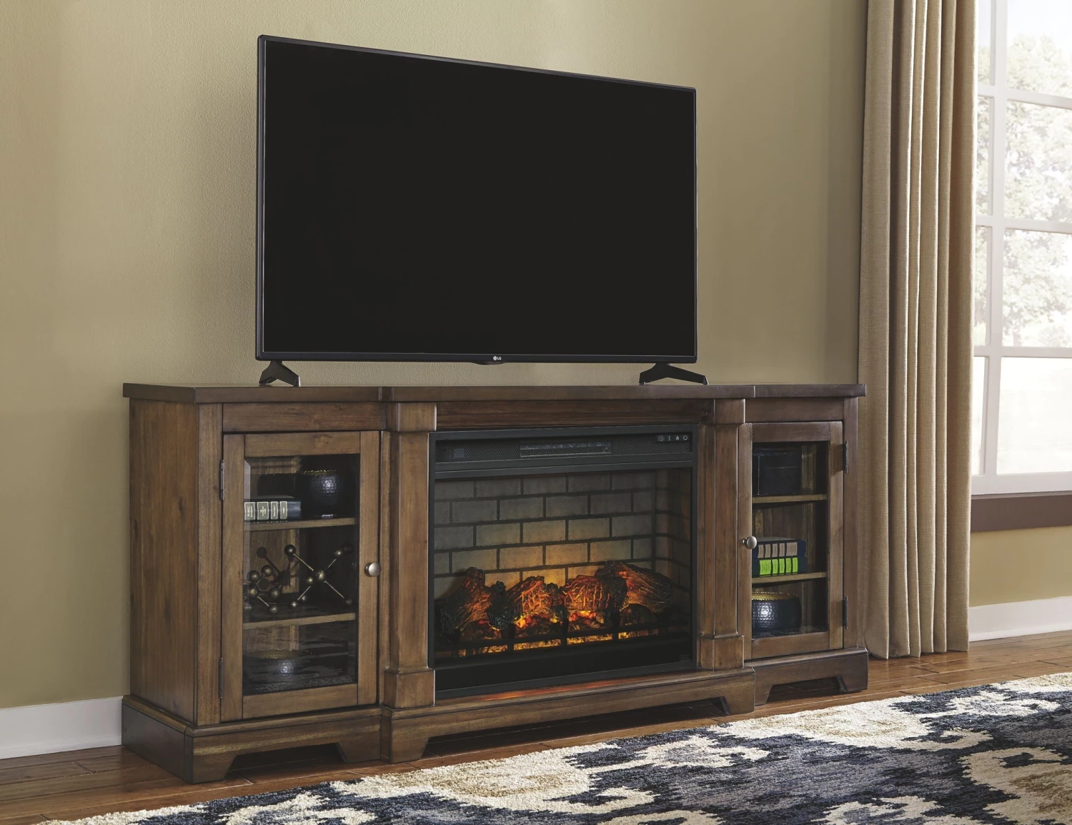 Flynnter – Medium Brown – XL TV Stand withFireplace Option