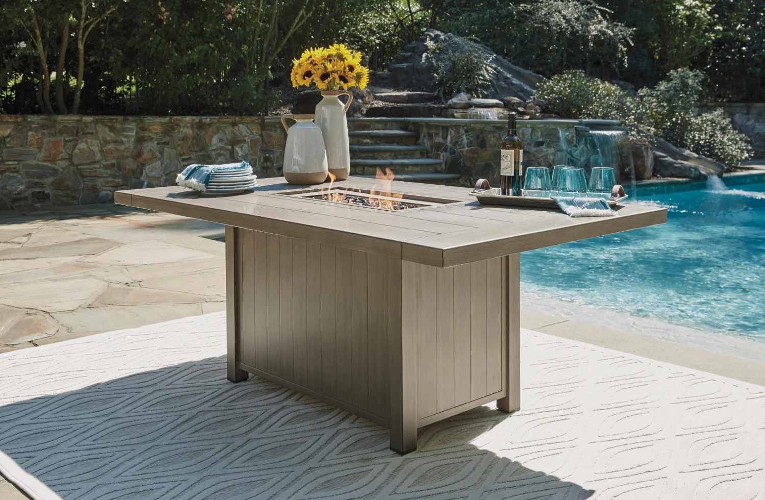 Ashley Windon Barn Rectangular Fire Pit Table All Dining Tables